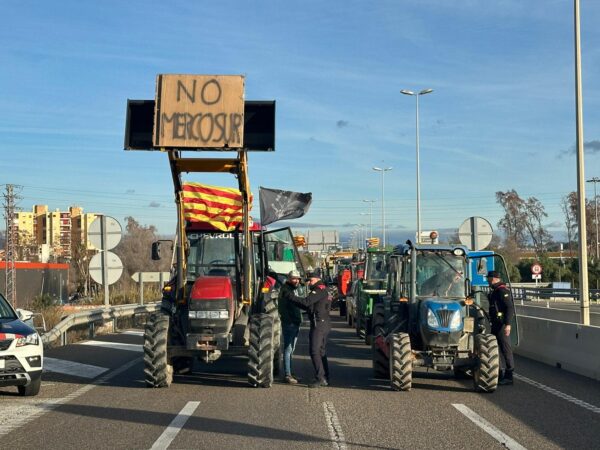 Una seixantena de vehicles entre tractors i cotxes convocats per Revolta Pagesa talla aquest dijous l’accés al Port de Tarragona de l’A-27. En una mobilització que es replica en diferents punts del país i d’Europa, els pagesos reclamen que la UE no signi l’acord comercial amb Mercosur, ja que consideren que els perjudica a nivell econòmic.