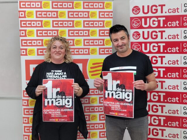 Els sindicats UGT i CCOO han presentat aquest dimarts la convocatòria del Primer de Maig a Tarragona en un context marcat per la preocupació social i laboral. Denuncien l’augment del cost de la vida, l’estancament dels salaris i la precarització de la classe treballadora, així com la sinistralitat laboral, que continua causant víctimes.